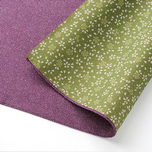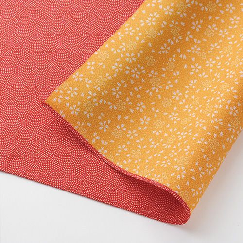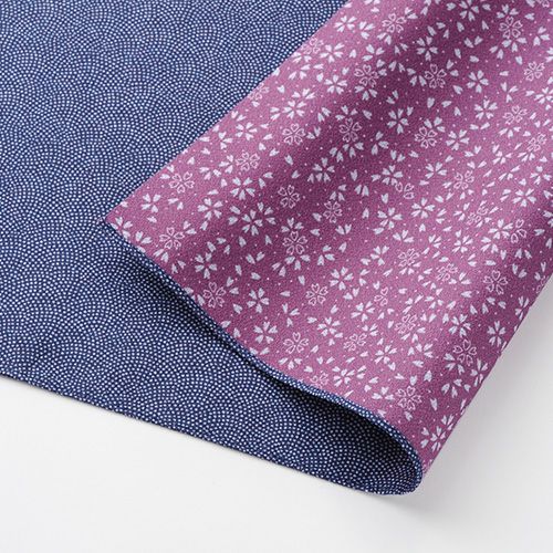 リバーシブルのデザインなので、ふろしきラッピングすると華やかに仕上がります。生地も薄手でハリがあり、シワになりにくい素材です。
