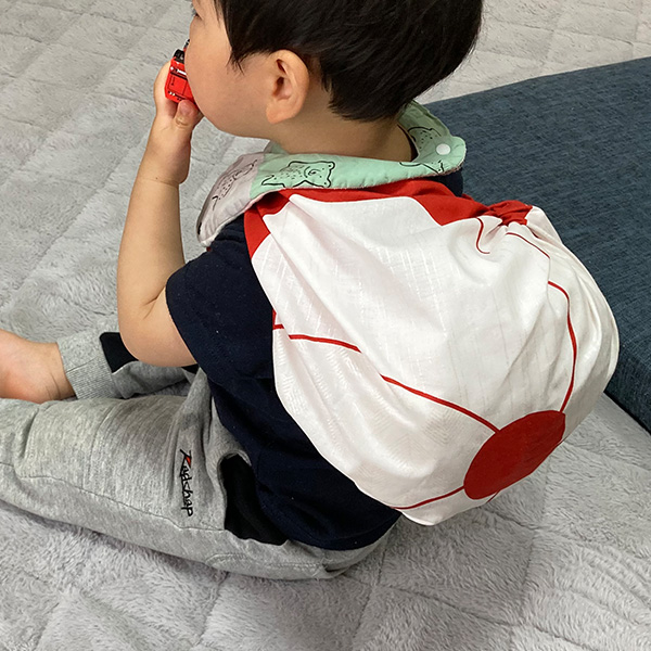 広げても包んでも美しく、結ぶ方向や中身によっても印象が変わるようにデザインされています。また、一升餅や着物のバッグとしての見え方も工夫されています。