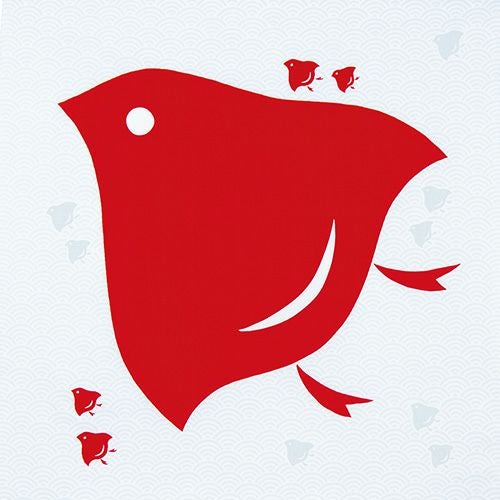 ギフトを包むと本体が赤、結び目が白となりおめでたい紅白のギフトが完成します。また、小さい千鳥も包んだ際にキレイに見える位置を考えて配置しています。