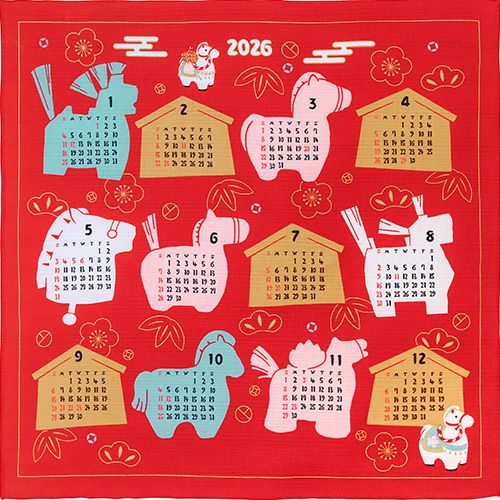 50cmサイズなので、カレンダーとしてお使いいただいた後は、お弁当包みとしてもお使いいただけます。また、おめでたいラッピングとしてもおすすめです。