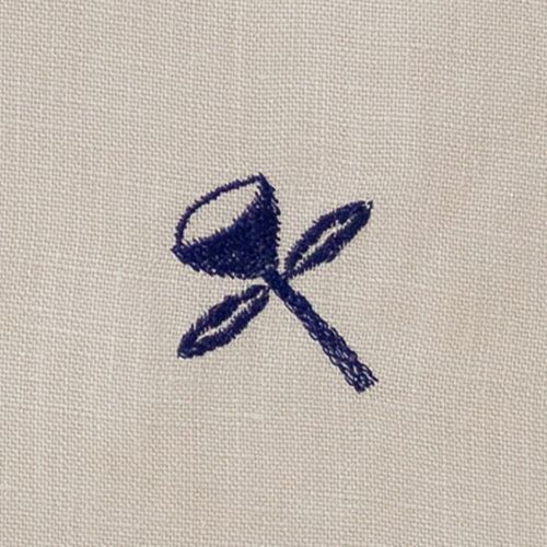 柔らかい手触りのフレンチリネンにミナ ペルホネンの手描きの図案をもとにしたワンポイント刺繍を施しました。