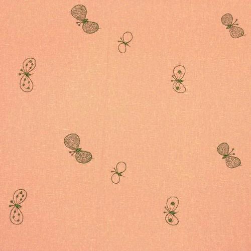 軽やかなリネンに穏やかな空気の中をふわりと舞うちょうちょの様子を刺繍で表現しています。この“choucho”の図案はミナ ペルホネンの象徴的なテキスタイルです。