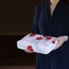梅らしい下から上に枝を伸ばす様子を、琳派のタッチで描いています。梅は百花に先駆けて咲くことから、古来よりおめでたい花として知られており、年始のご挨拶・婚礼のご挨拶にもお使いいただける紅白の梅のふろしきです。