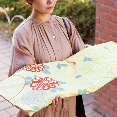 着物を“たとう紙”ごと包める持ち運びに便利な大判のふろしきです。ほど良い厚みと花唐草や花鳥更紗の上品なデザインはテーブルクロスやベッドカバー、目隠しなど、インテリアクロスとしてもおすすめです。