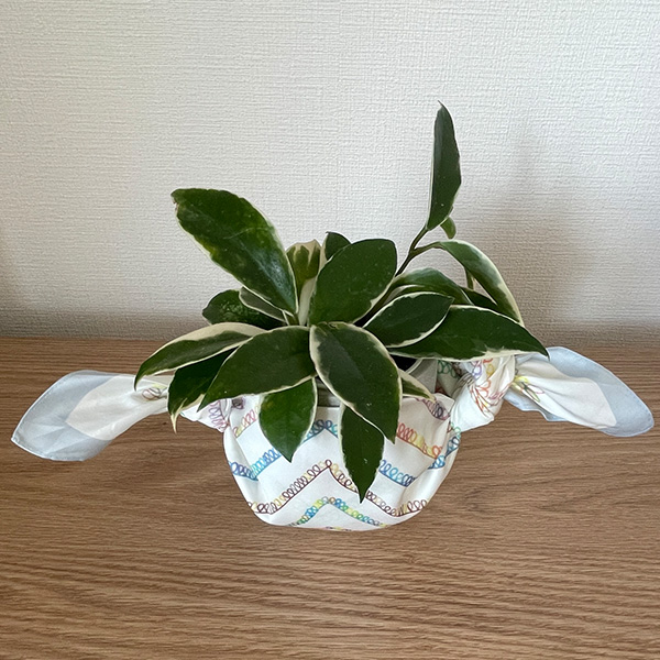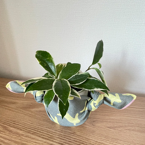 小ぶりの鉢植えは、Sサイズ(約50cm)ふろしきを使って、簡単に衣替えができます。