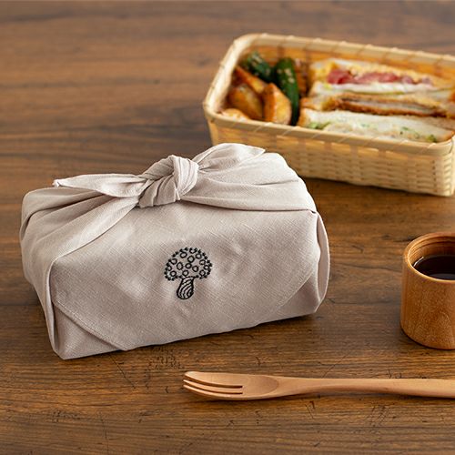 むす美の法人会社・山田繊維㈱の設立60周年を記念して、ミナ ペルホネンのデザイナー・皆川明氏がちょうむすびの為に書き下ろしたデザイン。生地の裏面まで染色が浸透しているため、裏表を気にせずお使いいただけます。