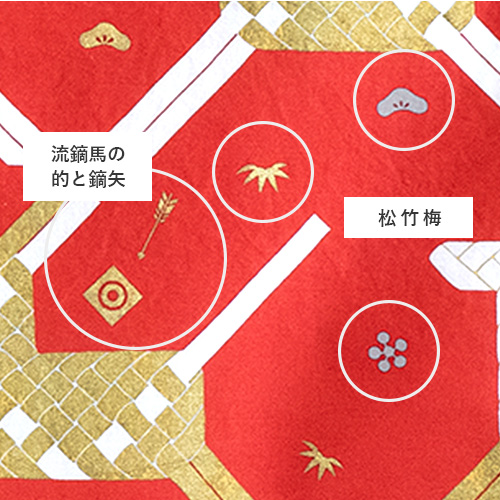 代表的なおめでたい文様で松は「長寿」、竹は「不変・長寿」、梅は「高潔・忍耐・出世」の象徴とも言われています。