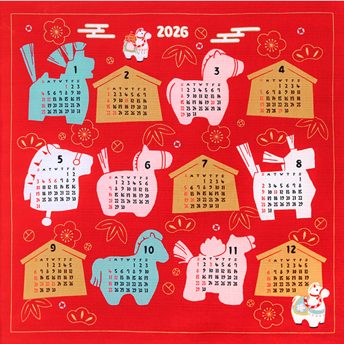 Sサイズなので、カレンダーとしてお使いいただいた後は、お弁当包みとしてもお使いいただけます。他にも、おめでたいラッピングとしてもおすすめです。