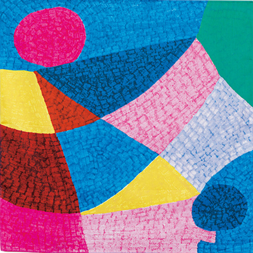 見たもの、聴いた曲、感じたこと、またその時々の心境を好んで描く。そして画面には、独特にデザイン化された線・点・文様の世界が広がっていく。