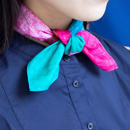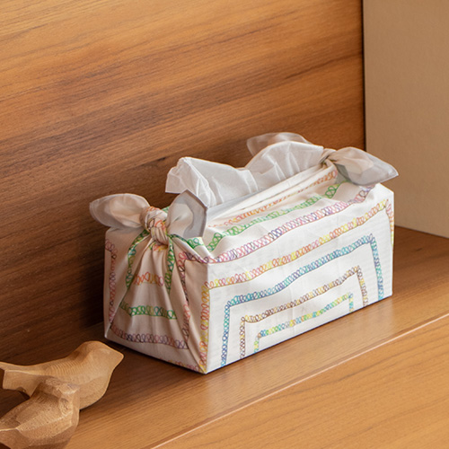 綿サテン生地にすることで、スカーフやハンカチなどふろしき以外でも幅広い用途でご利用いただきやすいようにしています。3つの支援団体でも販売しやすい仕様に工夫しました。