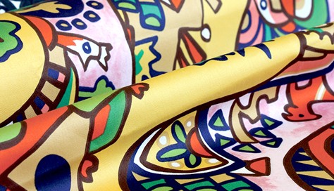 光沢があり発色が良く、手描き感のあるデザインを引き立てる綿100%のサテン生地を使用しました。