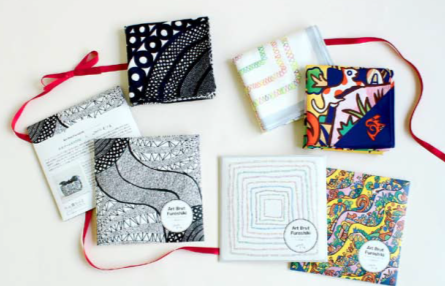 団体が支援するアーティストたちのアート作品をふろしきとして商品化し、販売。その売上の一部が、アーティスト本人と所属団体に還元される仕組みになっています。