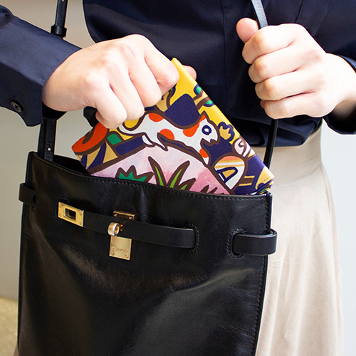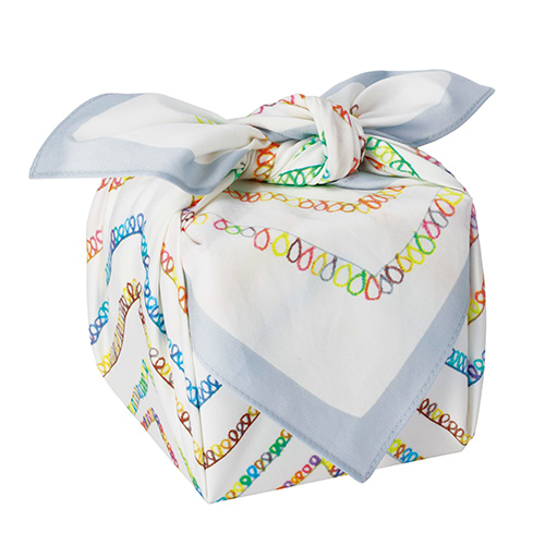 ふろしきとして使用する際は正方形にしなくてはならないので、ふろしき専門店としての経験を活かし、広げた状態と包んだ時の変化を考慮しアレンジをしました。