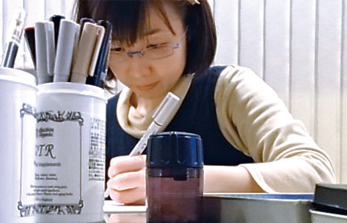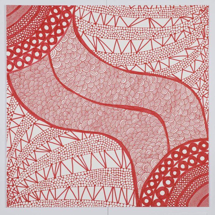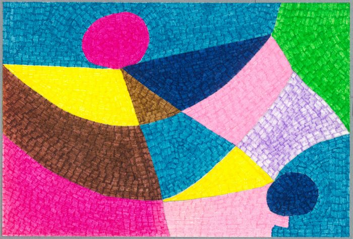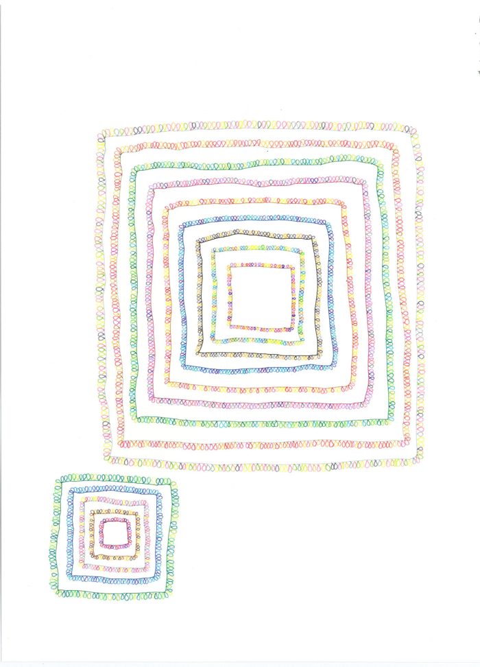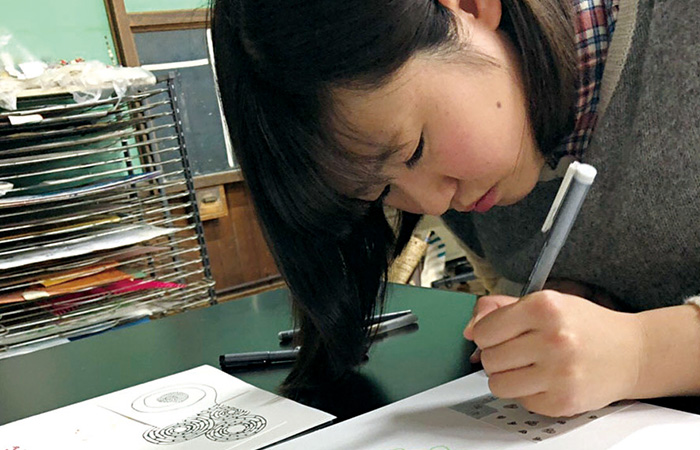水性のサインペンで色を染めていくと気持ちが落ち着き、描くことで心の循環を促しています。