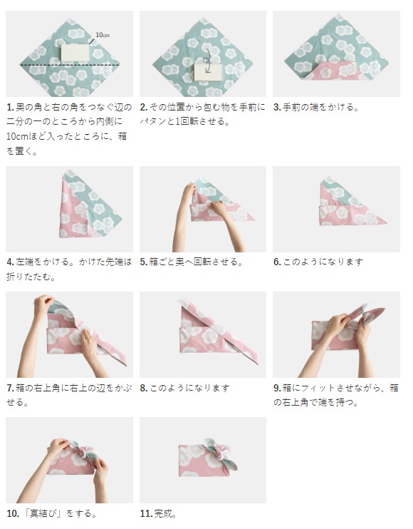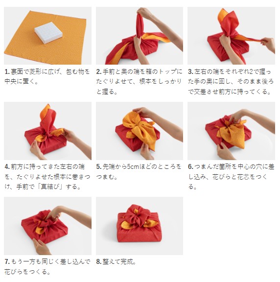 ふろしきを使う時に基本となる結び方です。まだやったことが無い方はここで練習してみてくださいね!