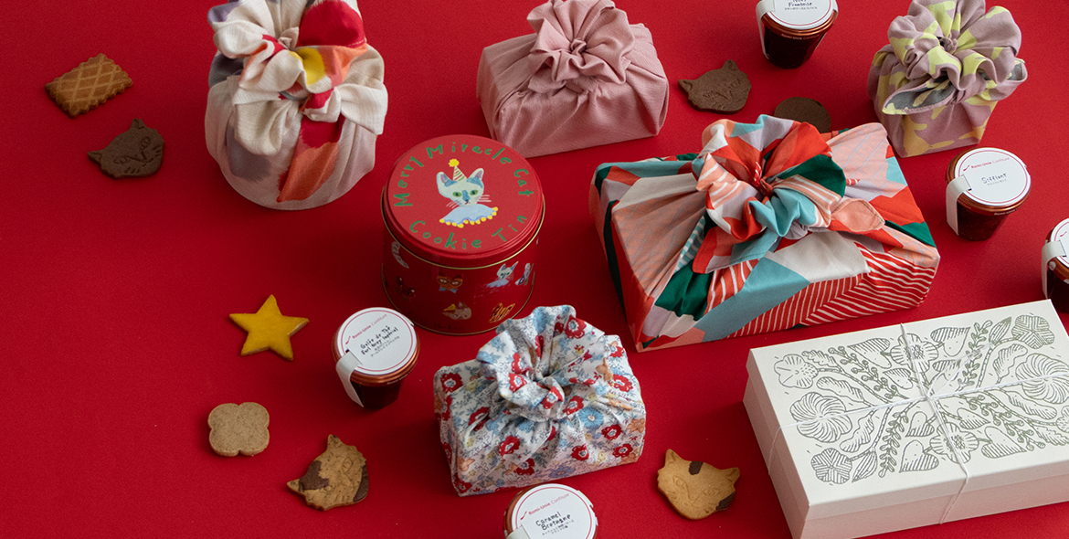 『Fairycake Fair』の洋菓子、『Romi-Unie Confiture』の手作りジャムのラッピングは「ふろしきラッピング」のみ承っております。