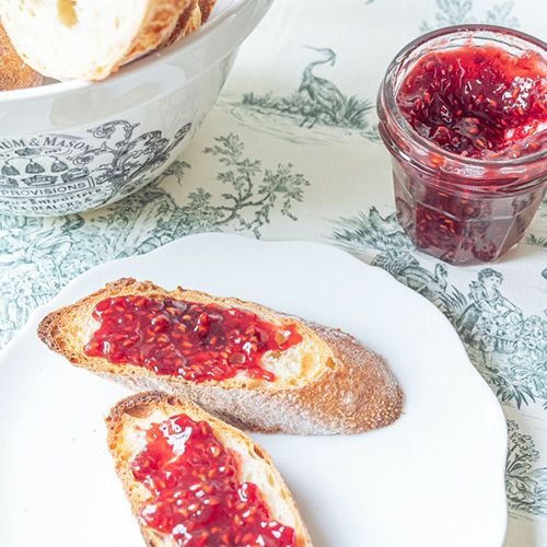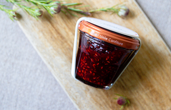- いちごの甘味と酸味が絶妙な味わい。焼き立ての食パンやパンケーキに付けて食べるとフランボワーズの香りで贅沢な気持ちになります。