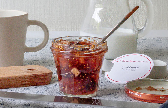 角切りされたりんごと、いちじくの優しい香りがあわさって、果実の「シャキッ」「とろっ」の両方の食感を楽しめるジャム。