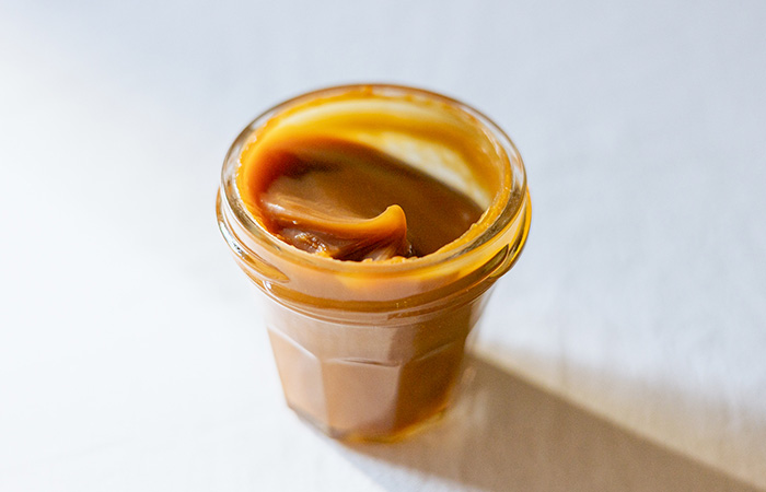 “ジャム”というより“クリーム”のような、濃厚でリッチな甘さと香ばしさ。発酵バターとゲランドの塩が効いていて、甘ったるさの中にほろ苦さと塩気があって、とっても大人の味。