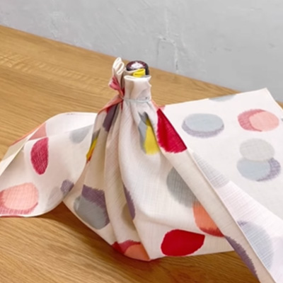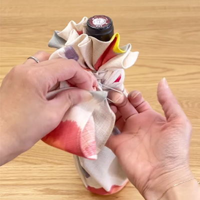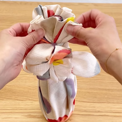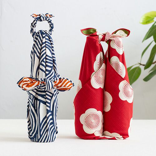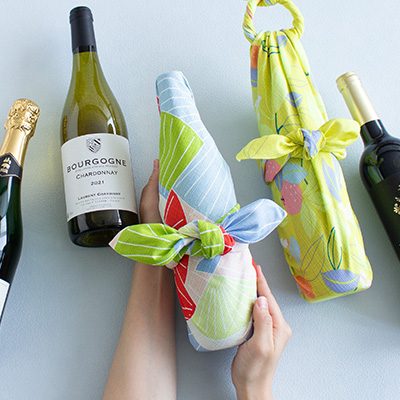 風呂敷の美しさを活かしたボトルラッピングを取り入れてみてください。