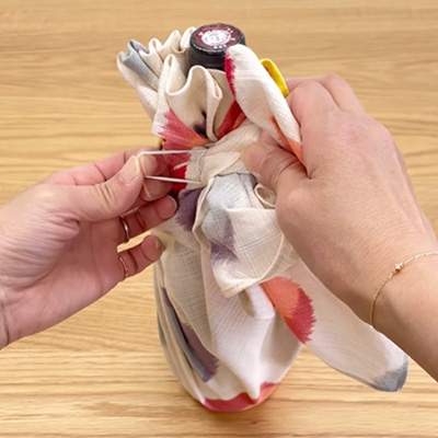 これでプリーツが美しく出るボトルラッピングの完成です。
