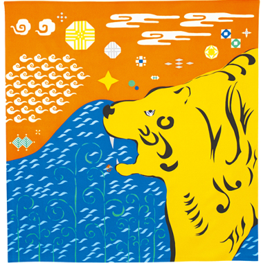 チーフと同じく、富士山のモチーフをバックに雄々しくたたずむトラ。その周りを人気シリーズ【伊砂文様】を手掛けた伊砂久二雄さんオリジナルの文様が取り囲みます。