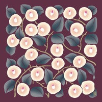 ボルドーの色がとても素敵です。紫より赤のほうがちょっと強めかな。つばきの色とすごく合ってて、めっちゃかわいい。50センチも販売してくれないかなと期待してます。