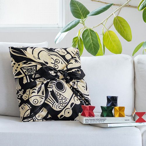 100 天然藍染 野老むすび 黄金比 唐草 濃藍