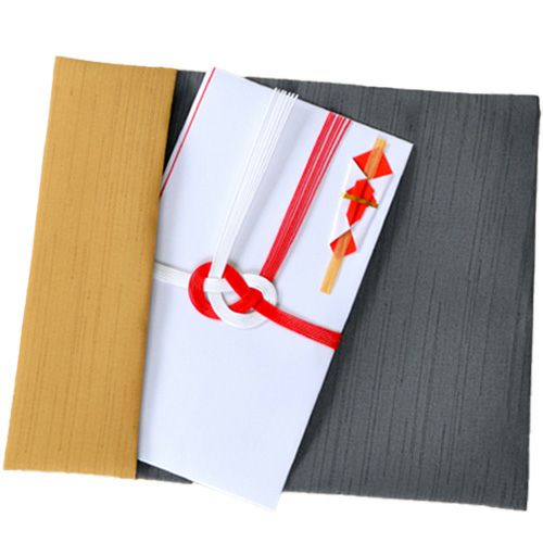 ポリエステル紬リバーシブル金封ふくさ【箱入】キンチャ/グレー