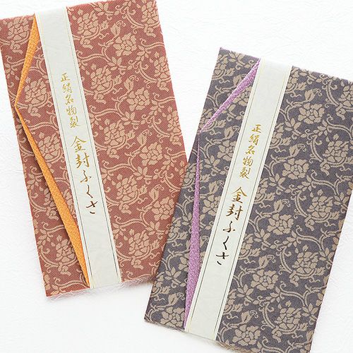 正絹名物裂(牡丹唐草)金封ふくさ【箱入】エンジ