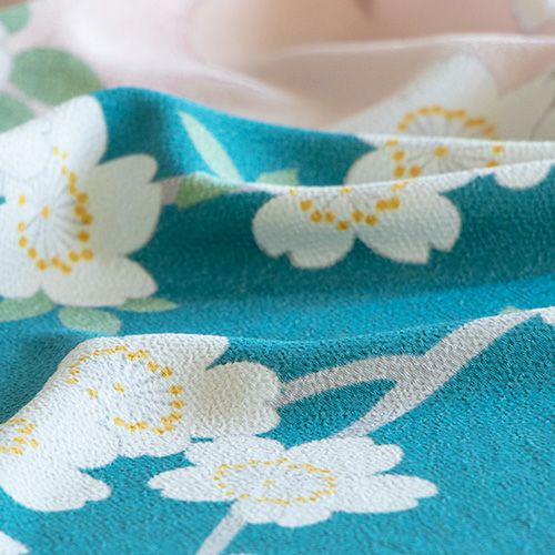 70 光悦ちりめん友禅 四角取名物裂 ブルー