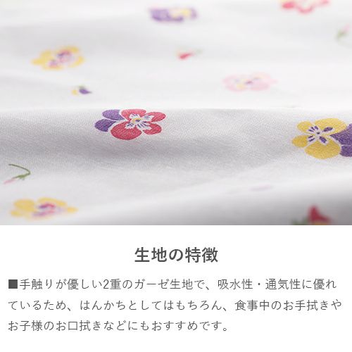 ガーゼはんかち【袋入】 パンジー マルチ